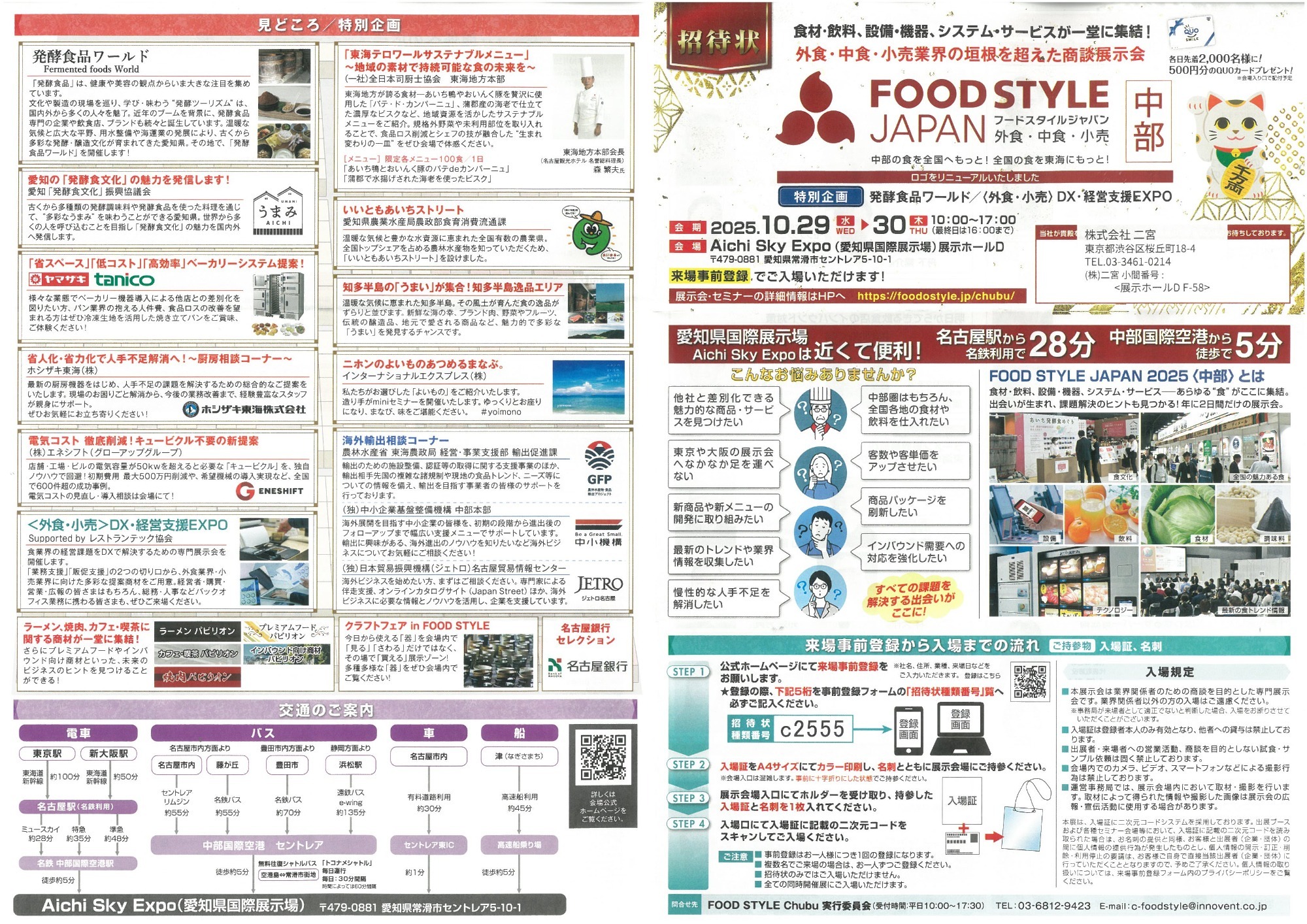 来る1月22日から23日までの両日、大阪府大阪市住之江区のインテックス大阪にて、「FOOD STYLE 関西 2025」が開催されるにあたり、二宮が展示ブースを出展します。