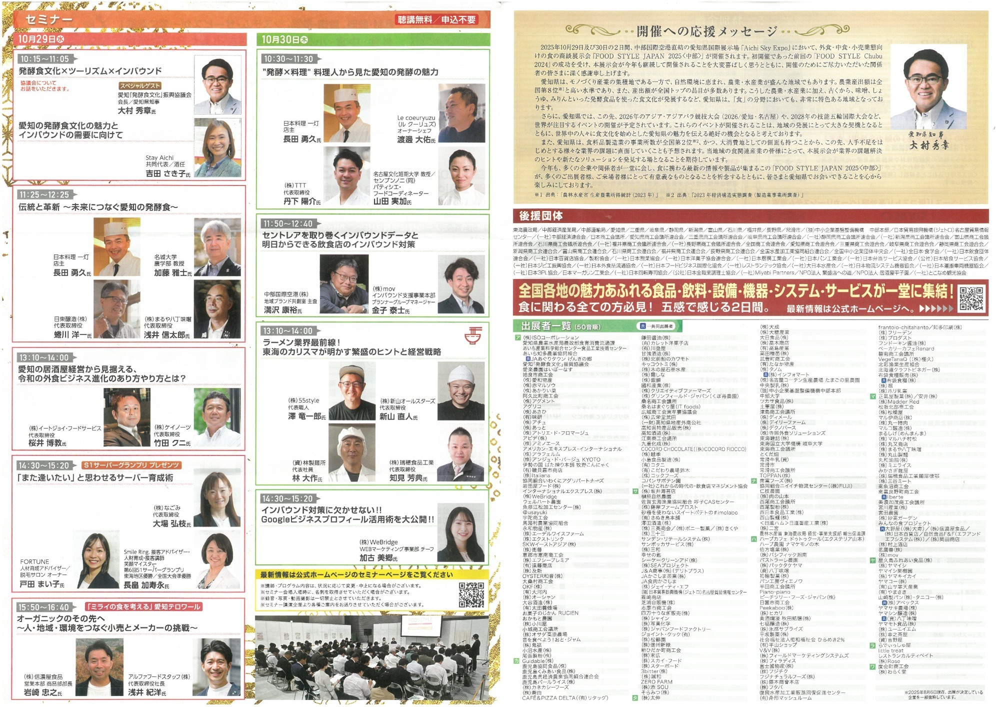 「FOOD STYLE JAPAN」は、東京・大阪・福岡・沖縄の4都市において毎年開催されている、外食・中食・小売業向けの食の専門商談展示会です。愛知県では、昨年10月の初開催以来、今年で二度目の催しとなります。昨年の中部地方における実績は、二日間合計で来場者数は7,908名、出展者数は300を超え、今年はそれ以上の盛況ぶりが予想されます。