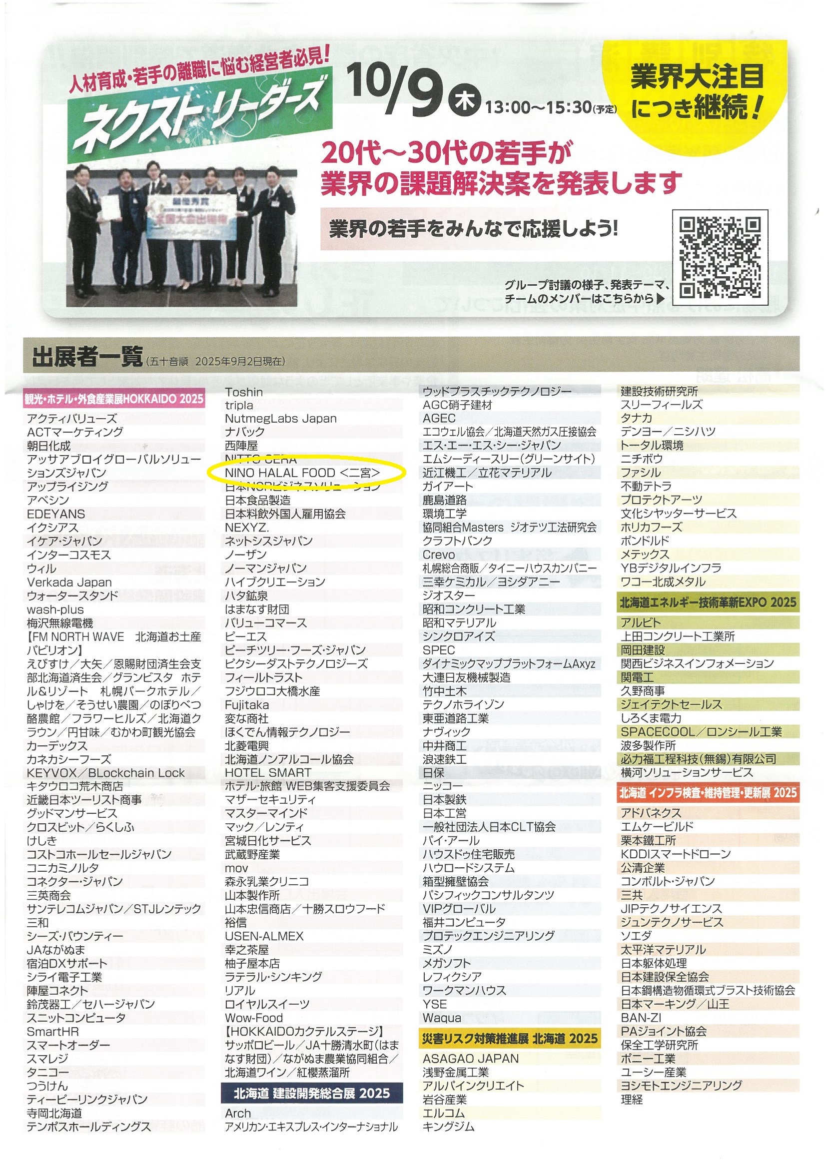 来る10月8・9日の両日、札幌市白石区流通センターにあるアクセスサッポロ(札幌流通総合会館)にて、「第8回 観光・ホテル・外食産業展」が開催されるにあたり、二宮がハラール食品の展示を行います。