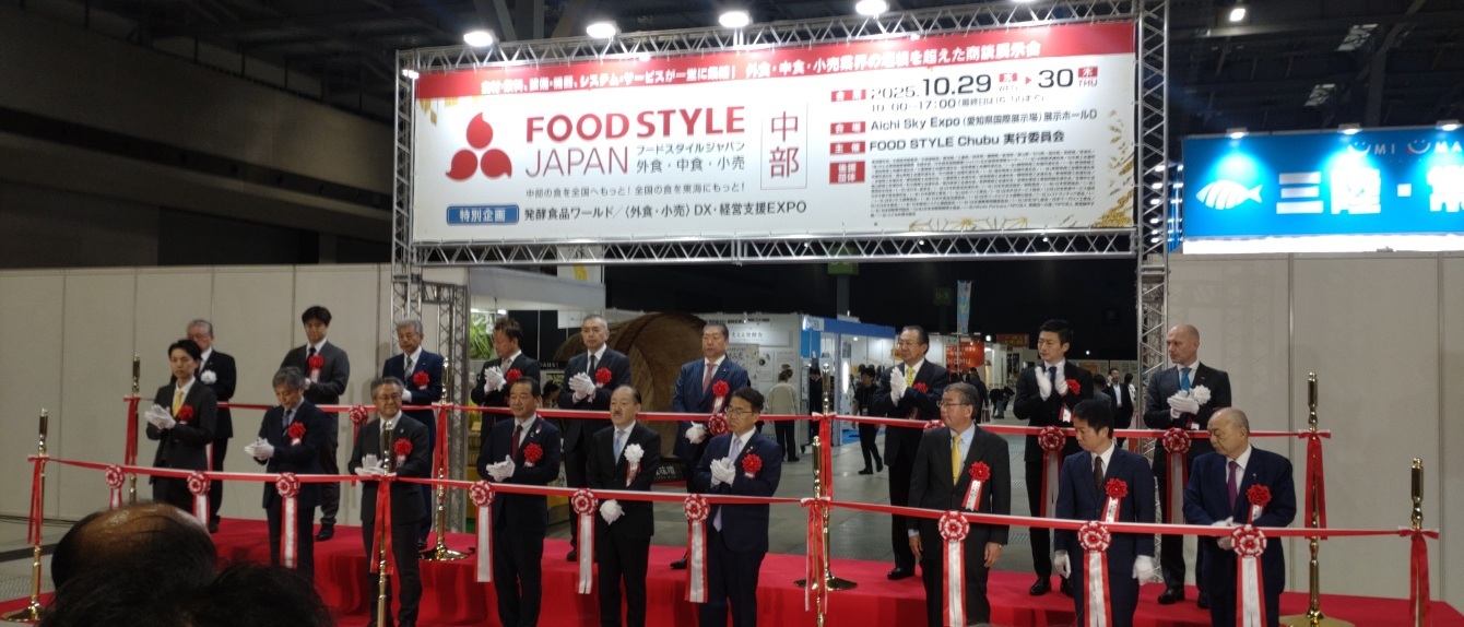 開催に先立ち、オープニングセレモニーが行われ、大村秀章愛知県知事が挨拶に立ち、「今回で二度目の開催となりますが、全国からあらゆるフードビジネス関連企業が一堂に会します。また味噌・醤油など、名古屋の食文化を代表する発酵・醸造食品が集約される場でもあります」と述べ、同展示会の開催意義を強調しました。