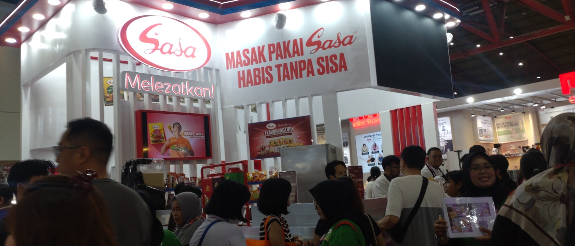 会場内をさらに奥へと進むと、両側にはインドネシア料理を振舞う出店が立ち並び、大鍋で調理した激辛料理を提供する店の前には、長蛇の列が見られました。